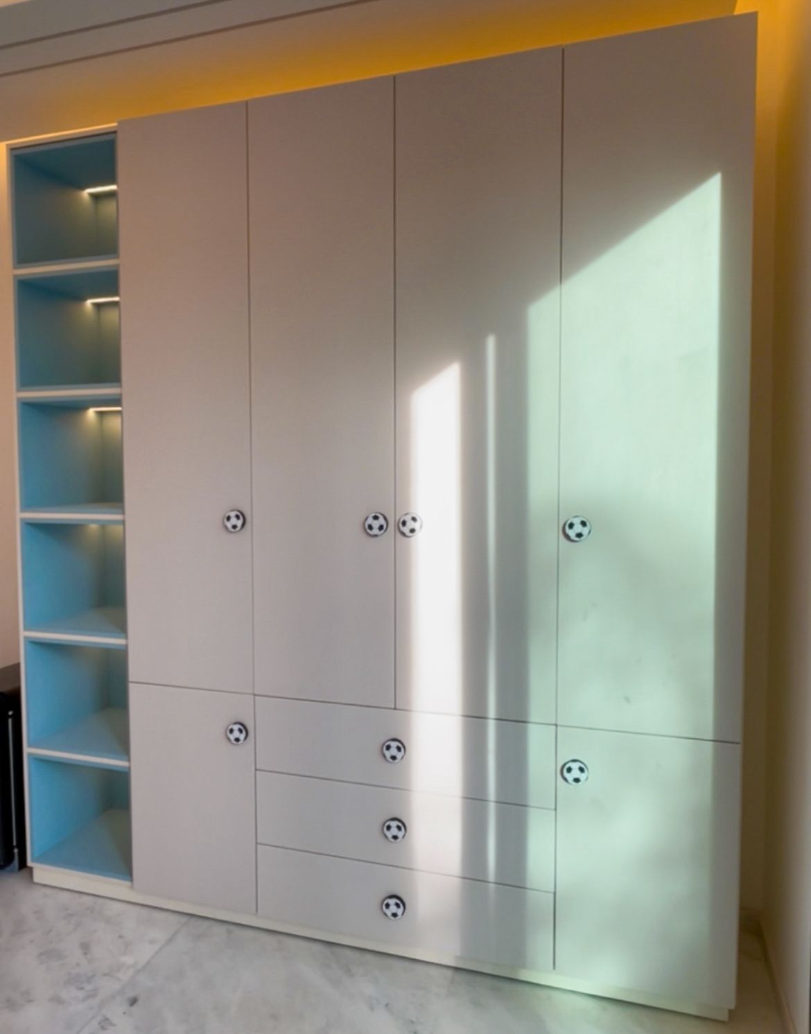 Offrez à votre enfant une chambre inspirée de l’univers du football, pensée pour faire rêver tous les passionnés du ballon rond. Cette chambre combine design sportif, confort et fonctionnalité, avec des couleurs dynamiques et des détails soigneusement travaillés rappelant les plus grands stades.